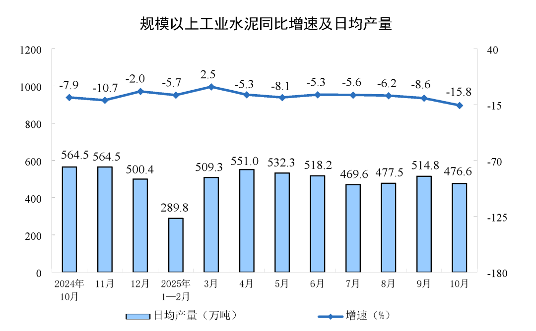 分产品看,10月份,规模以上工业623种产品中有313种产品产量同比增长。其中,钢材11864万吨,同比下降0.9%;水泥14775万吨,下降15.8%;十种有色金属695万吨,增长2.9%;乙烯314万吨,增长11.7%;汽车327.9万辆,增长11.2%,其中新能源汽车171.0万辆,增长19.3%;发电量8002亿千瓦时,增长7.9%;原油加工量6343万吨,增长6.4%。10月份,规模以上工业企业产品销售率为96.4%,同比下降1.0个百分点;规模以上工业企业实现出口交货值13245亿元,同比名义下降2.1%。