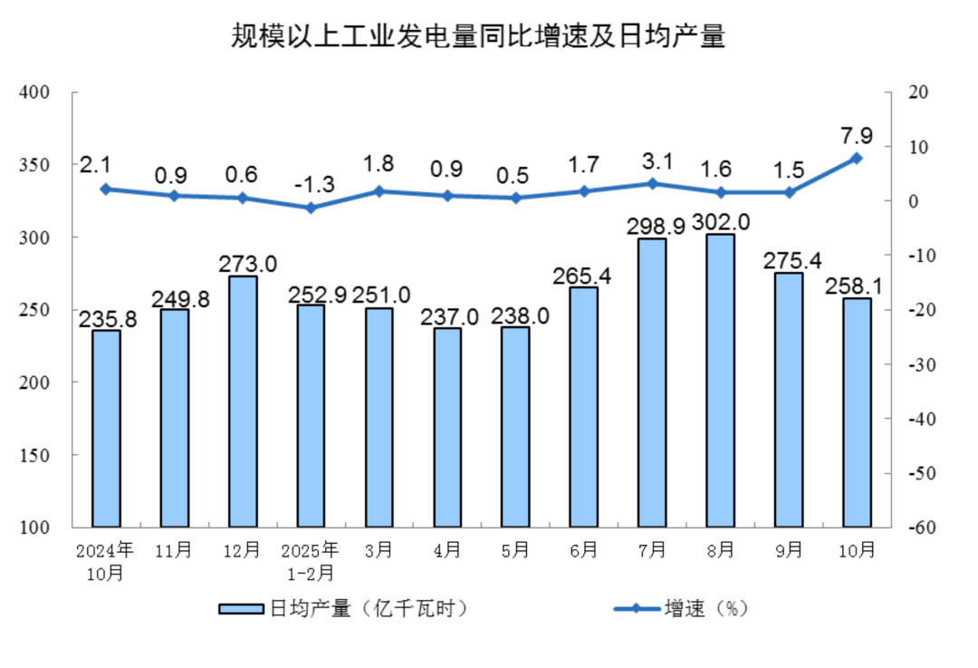 新能源圈获悉,11月14日,国家统计局发布《2025年10月份能源生产情况》和《2025年10月份规模以上工业增加值增长4.9%》。