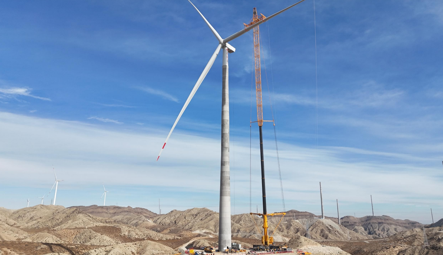 2024-04-30 12月2日,由中国能建葛洲坝一公司建设的内蒙古阿拉善中盐75兆瓦风电项目首台混塔风机吊装工作圆满落幕。这台轮毂中心高度达160米的混塔风机,是项目建设的关键节点成果,刷新了内蒙古清洁能源发展新地标。