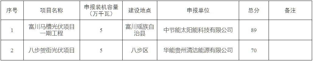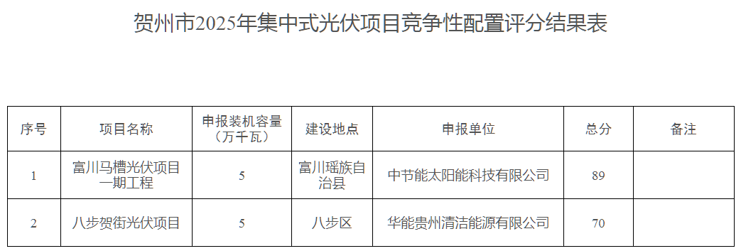 贺州市2025年集中式光伏项目竞争性配置评分结果表
