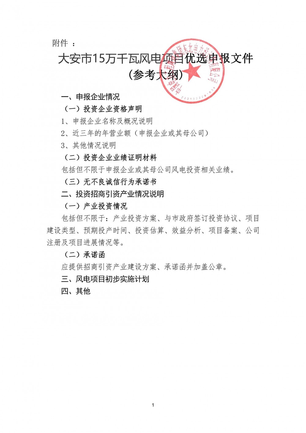 附:大安市15万千瓦风电项目优选申报文件(参考大纲).pdf