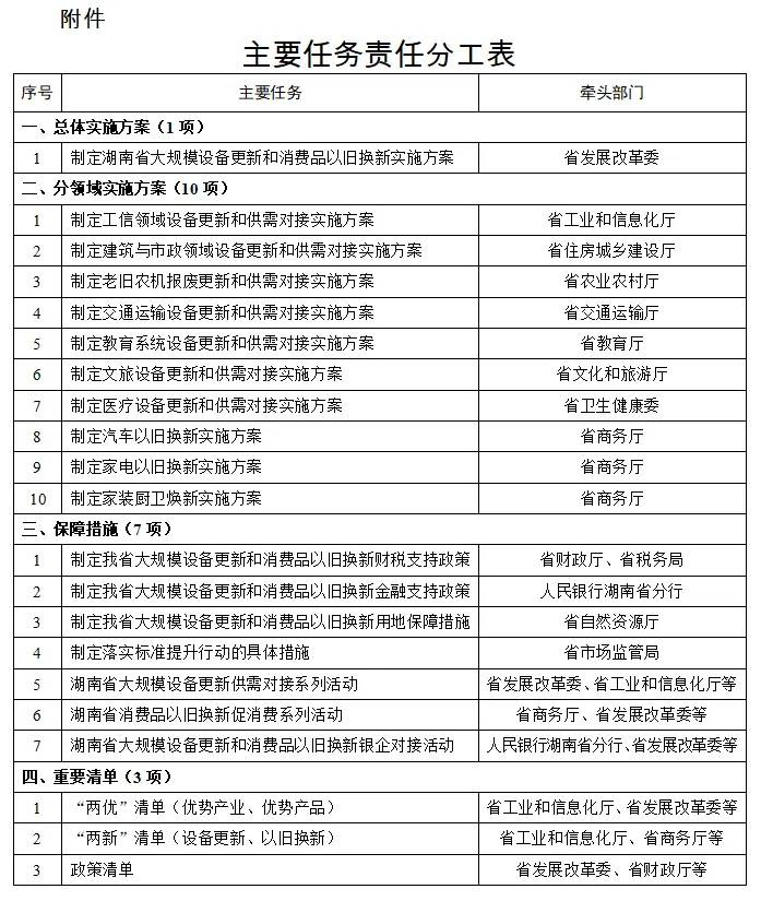 湖南省推动大规模设备更新和消费品以旧换新实施方案
