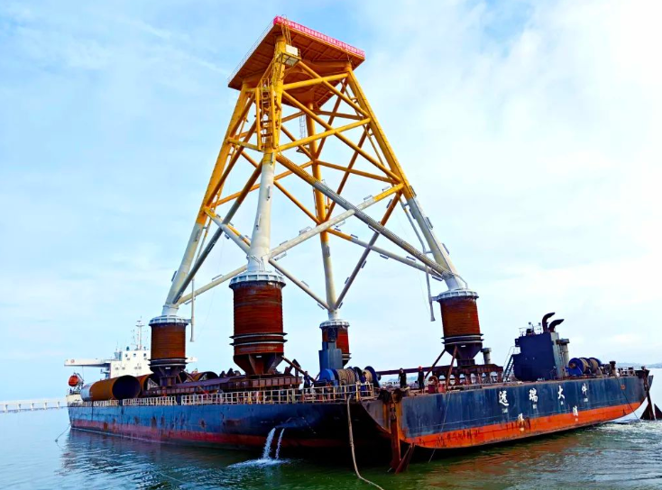 此次为中国水电四局承建的首套海上风电导管架出运,也是粤西地区首套导管架出运。