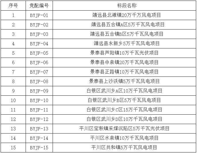 1、项目名称:白银市“十四五”第三批风光电项目竞争配置。