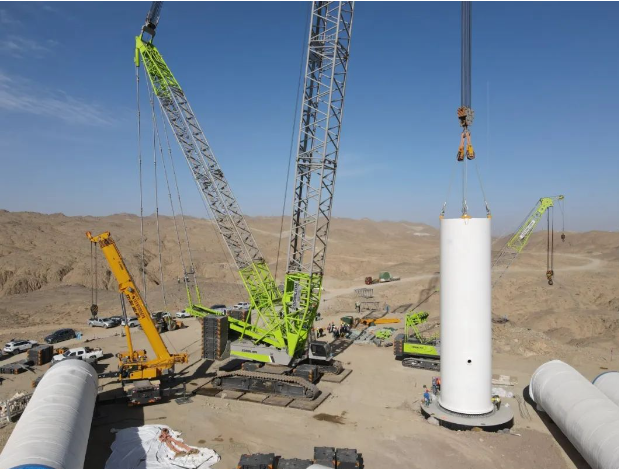 该项目位于甘肃省张掖市高台县罗城镇百万千瓦风电基地,占地面积37.6公顷,总装机容量20万千瓦,是典型的山地项目。为有效适应当地大风沙尘多、地势起伏大等环境条件,项目针对性地采用了钢混组合塔架风电机组,同时根据抗湍流强度、机位点情况、建设成本等因素对风机型号进行了精准选配,共安装中船海装15台6.25MW风电机组、1台5.55MW风电机组和19台5.3MW风电机组,在地势较高的山地区域采用钢塔塔筒,在地势平坦的区域采用混塔塔筒,实现风资源利用最大化。