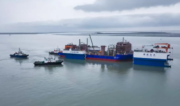 2024-04-30 据新能源圈了解到,4月23日,全球最大江海移动船坞——45000吨宽扁浅吃水型半潜驳“四航永兴”号圆满完成全国最大最重海上风电安装平台浮装出海运输任务。