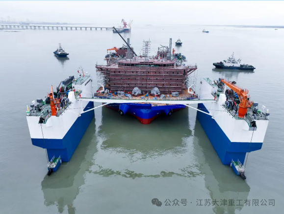 “港航平5”项目采用创新的“滚装+半潜”吉水方式,于4月21日至4月23日,在南通海事局的全力支持保障下,经南通海上“两中心”科学调度,通州湾海巡执法大队全程现场维护,于4月23日顺利吉水。