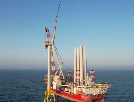 一年后,所有导管架基础全部安装完成。2022年2月,安装了首批西门子歌美飒 SG 8.0-167 DD 风电机组并在4月开始发电并网。