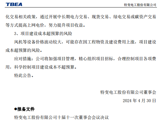 2024-04-30 据新能源圈了解到,4月29日晚间,特变电工发布关于投资建设新能源电站项目的公告。