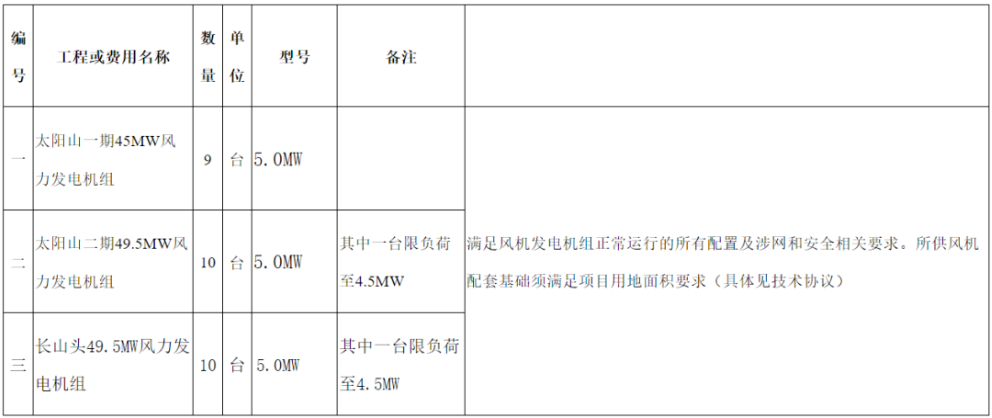 交货时间:太阳山一期2024年6月20日前首台机组交货,2024年8月20日前全部机组交货;太阳山二期2024年6月20日前首台机组交货,2024年8月20日前全部机组交货;长山头2024年6月20日前首台机组交货,2024年8月20日前全部机组交货。