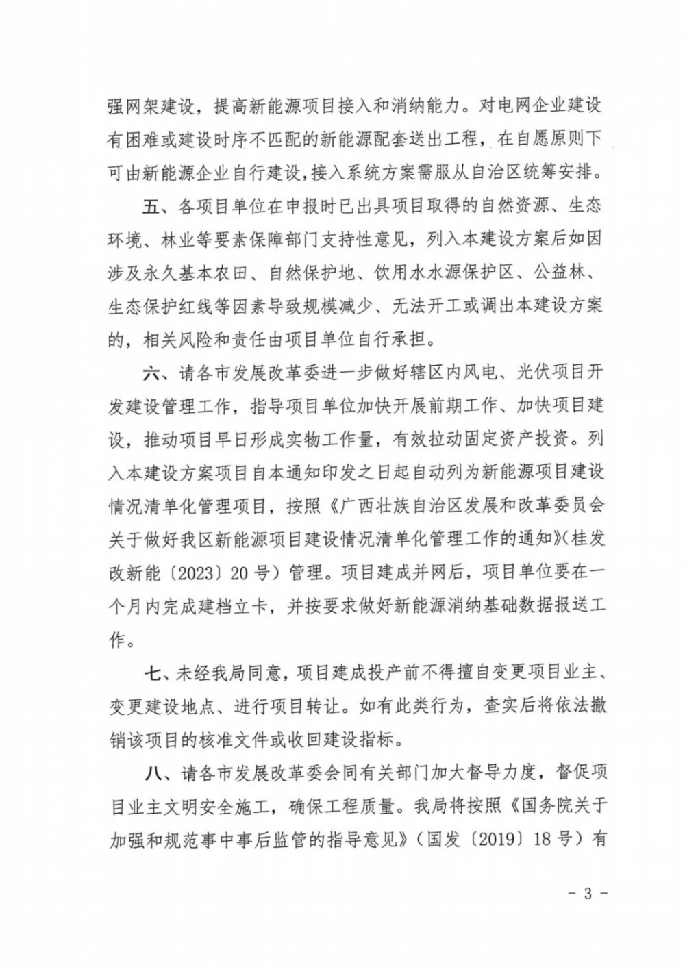 未经广西壮族自治区能源局同意,项目建成投产前不得擅自变更项目业主,变更建设地点、进行项目转让。如有此类行为,查实后将依法撤销该项目的核准文件或收回建设指标。
