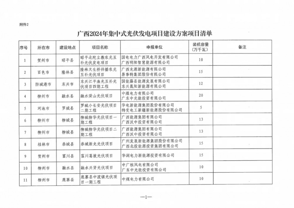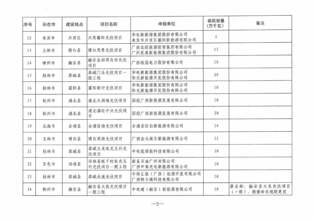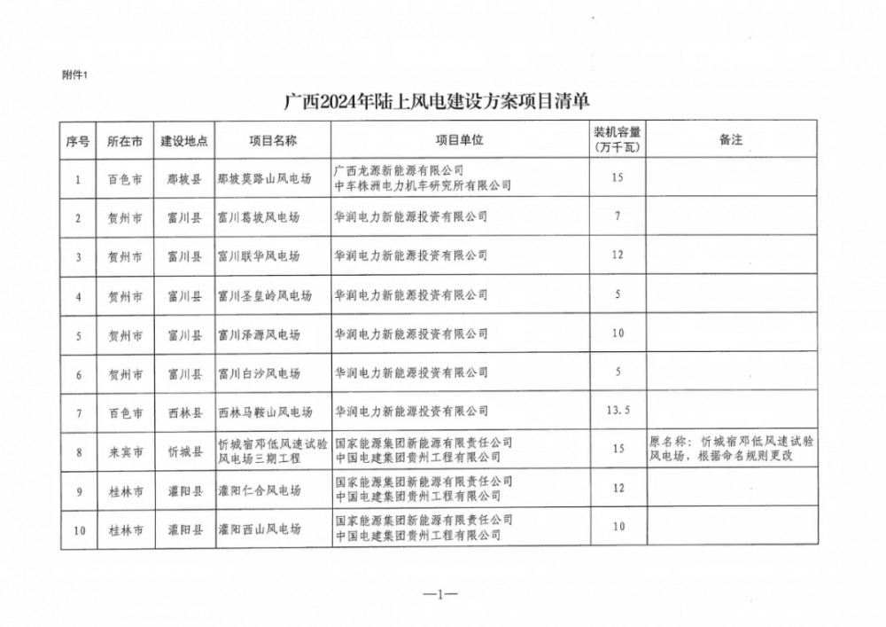 《通知》指出,列入广西2024年度陆上风电、集中式光伏发电项目建设方案的项目共209个,装机容量2644.5万千瓦。其中,陆上风电项目183个,装机容量2332.5万千瓦,集中式光伏发电项目26个,装机容量约312万千瓦。