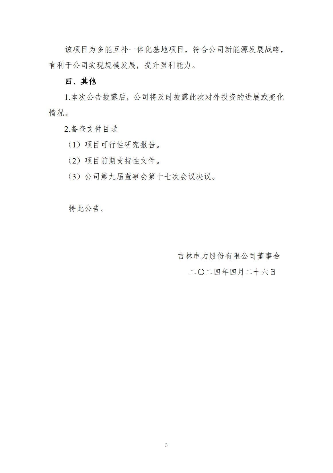吉电股份表示,该项目为多能互补一体化基地项目,符合公司新能源发展战略,有利于公司实现规模发展,提升盈利能力。