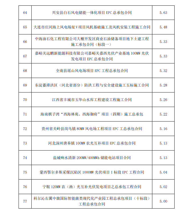 其中,2024年6月,公司新签合同金额在人民币5亿元以上的风电项目有15个。