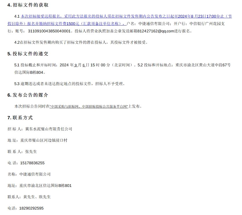 2024-04-30 8月17日,冀东水泥璧山有限责任公司SCR脱硝技术改造项目招标公告发布。