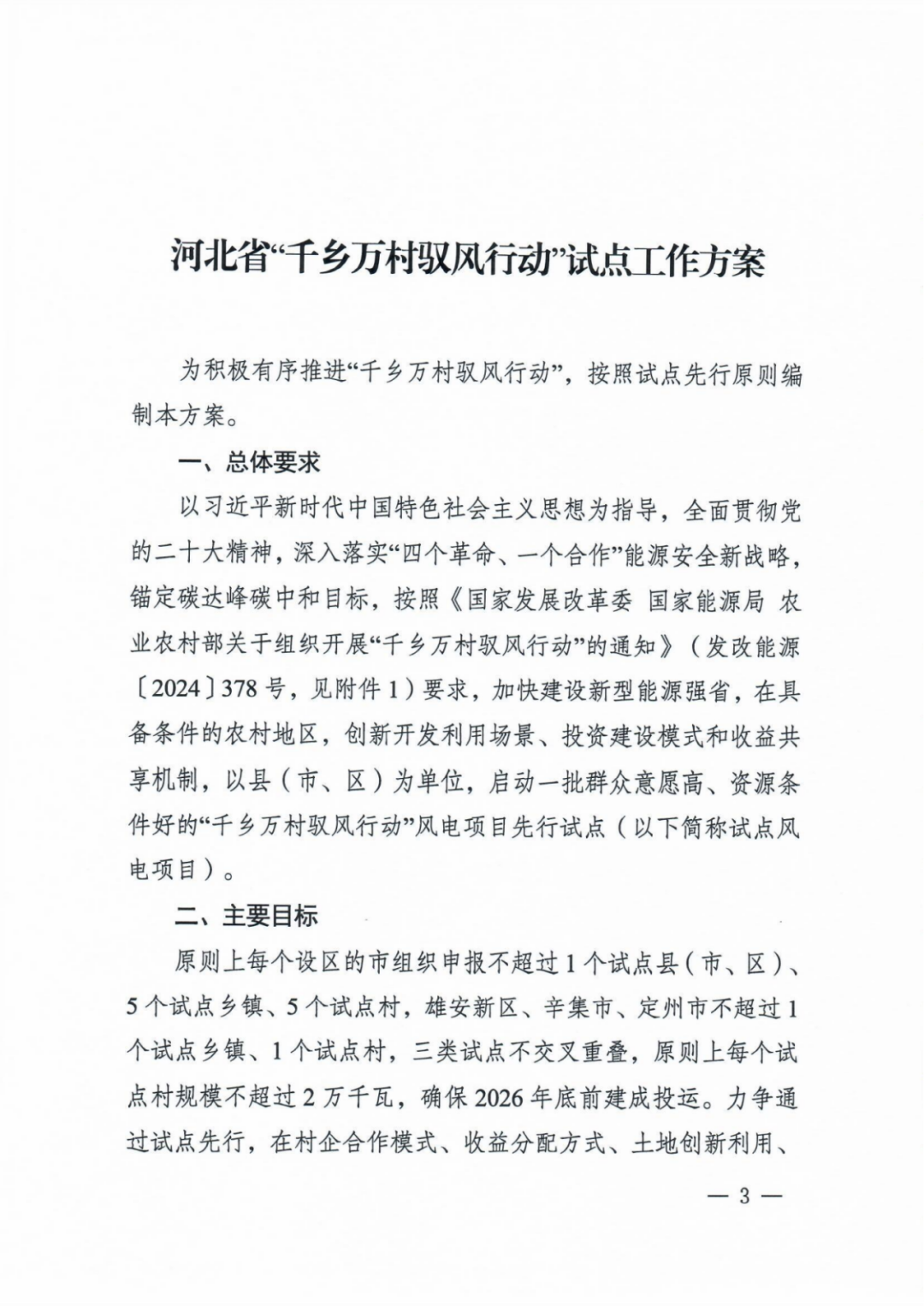 2024-04-30 近日,河北省发展和改革委员会 河北省农业农村厅发布关于《河北省千乡万村驭风行动试点工作方案》和开展组织摸排工作的通知。