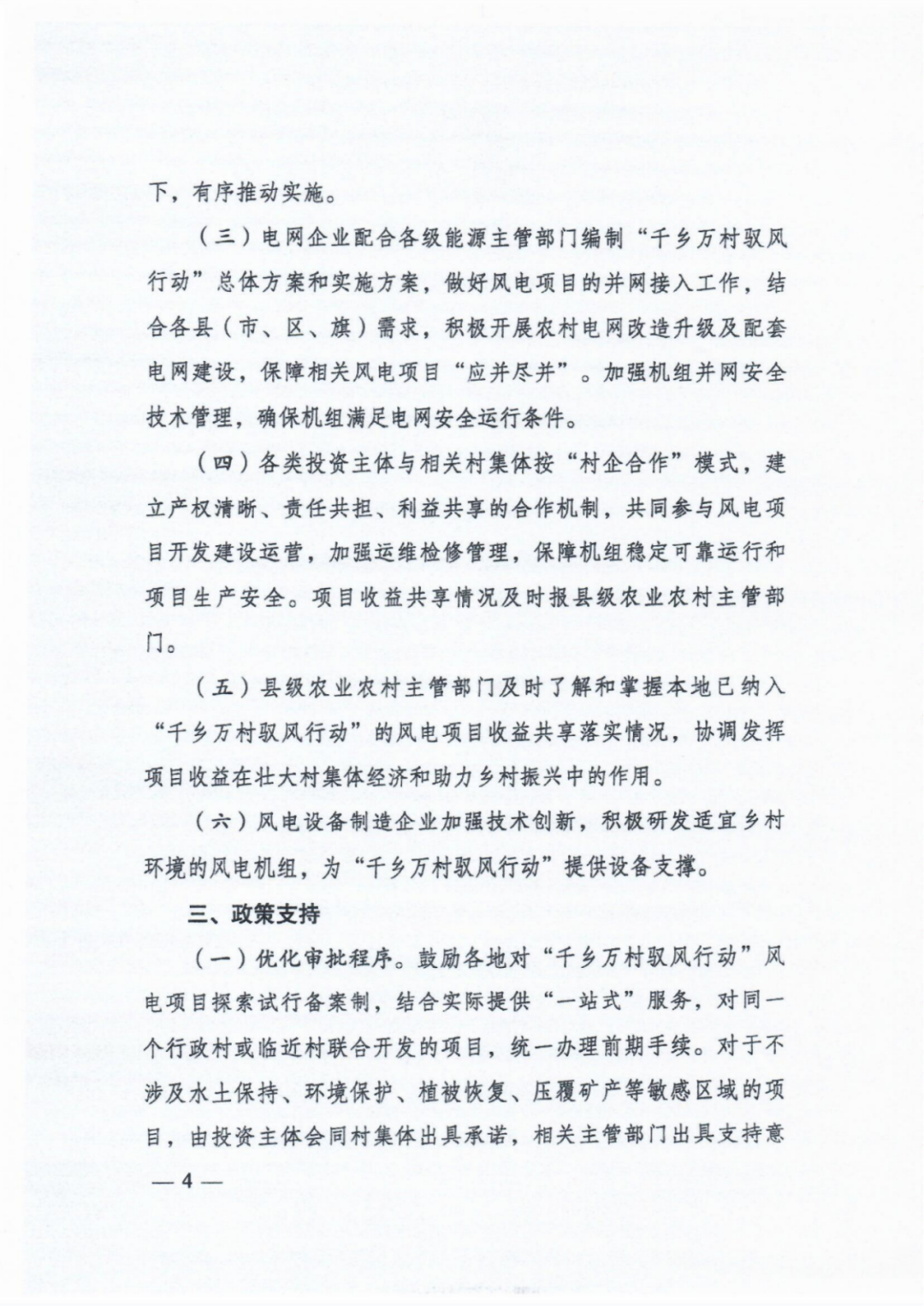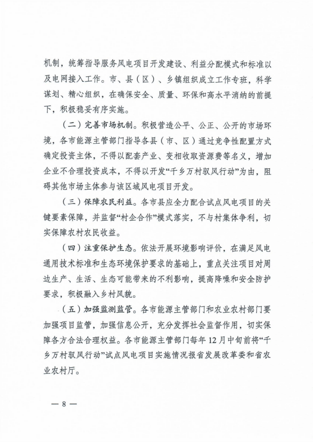 明确开发建设模式。各市能源主管部门要会同农业农村部门指导各县(市、区)根据当地农村发展实际和风电资源情况,探索村企合作等开发模式,鼓励各地因地制宜创新收益分配共享机制,合理确定收益分配模式、标准和管理办法,更多惠及村集体经济。
