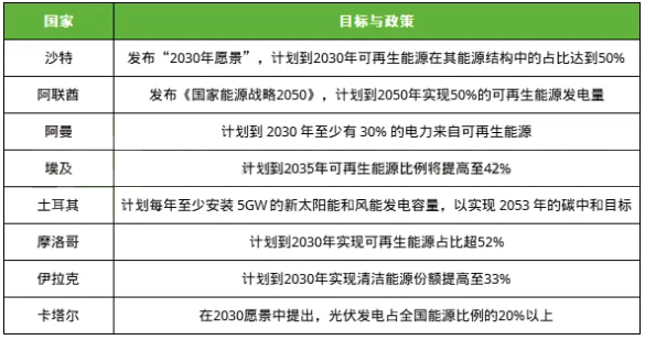 随着全球能源转型加速推进,中东各国愈发重视可再生能源发展,沙特、阿联酋、阿曼等国纷纷制定可再生能源发展目标、推出激励政策,加快能源转型步伐。
