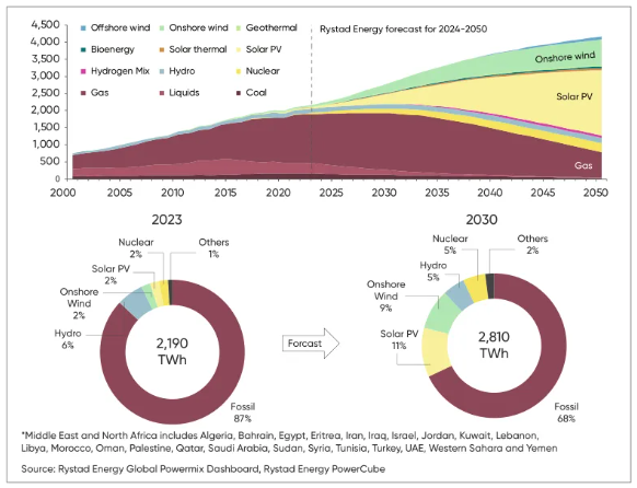 中东和北非地区发电来源