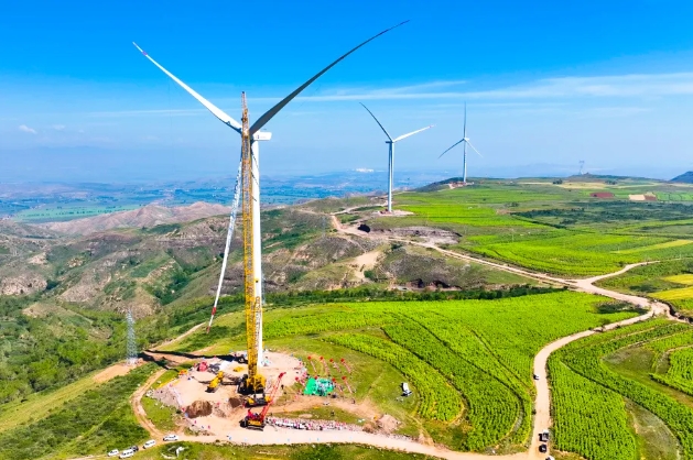 该项目位于内蒙古自治区乌兰察布市凉城县境内,是内蒙古自治区乌兰察布市实施风光战略 绿电进京重点工程。中国能建葛洲坝电力公司承建的一标段总装机容量500兆瓦,施工内容包括安装70台单机容量为6.66兆瓦和5台单机容量为6.76兆瓦的风电机组,新建220千伏升压变电站,配套109公里集电线路以及新建风场道路129公里。