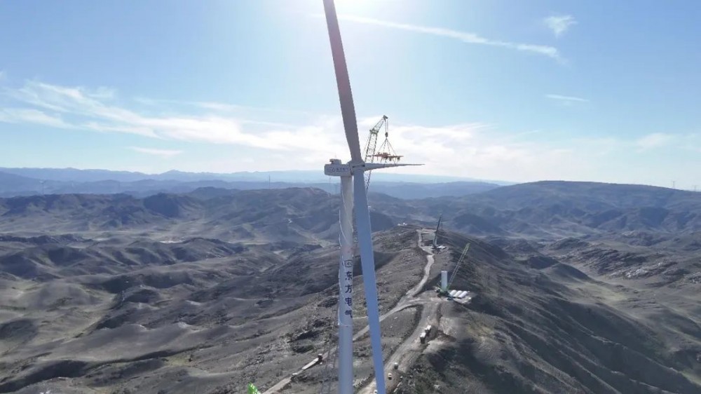 2024-04-30 9月10日,一航局承建的东方电气木垒风电100万千瓦风电项目二标段323.6兆瓦施工总承包项目首台10兆瓦风机吊装成功。