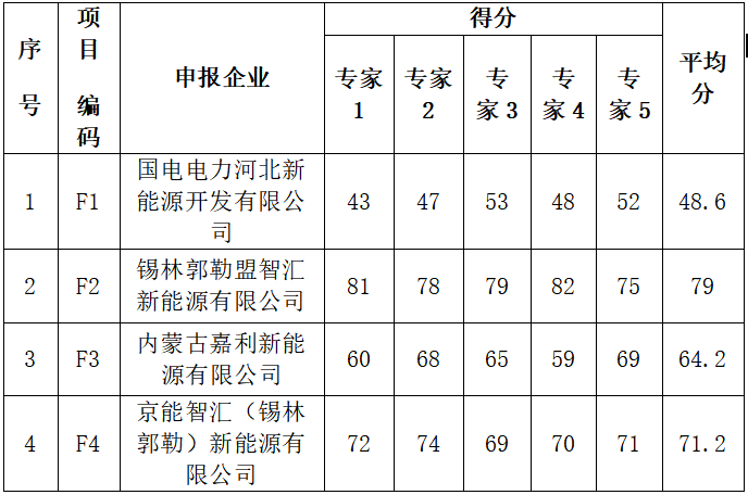 锡林郭勒盟2023年递补分散式风电项目优选专家评分汇总表