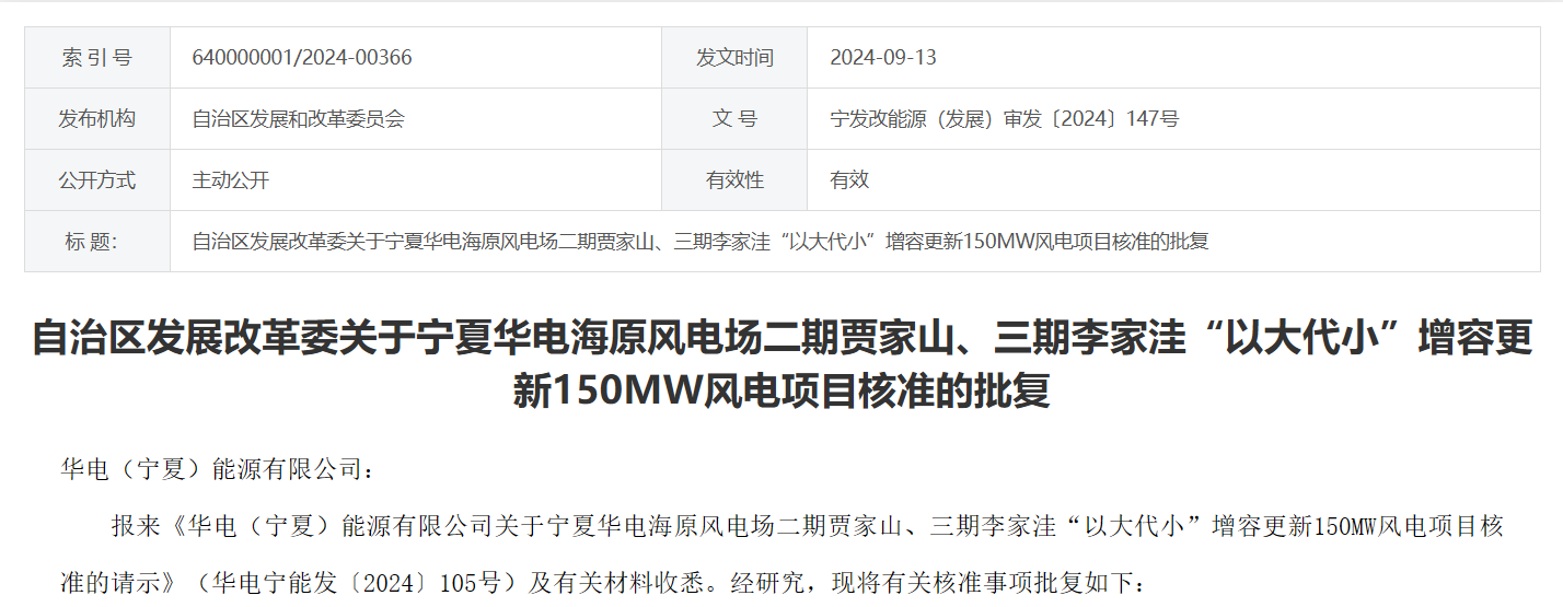 宁夏华电海原风电场二期贾家山、三期李家洼以大代小增容更新150MW风电项目