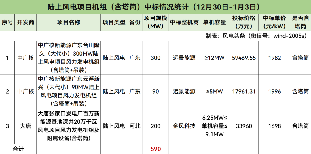 据统计,本周含塔筒陆上风电项目共计3个,规模总计590MW,项目中标均价为1892元/kW。