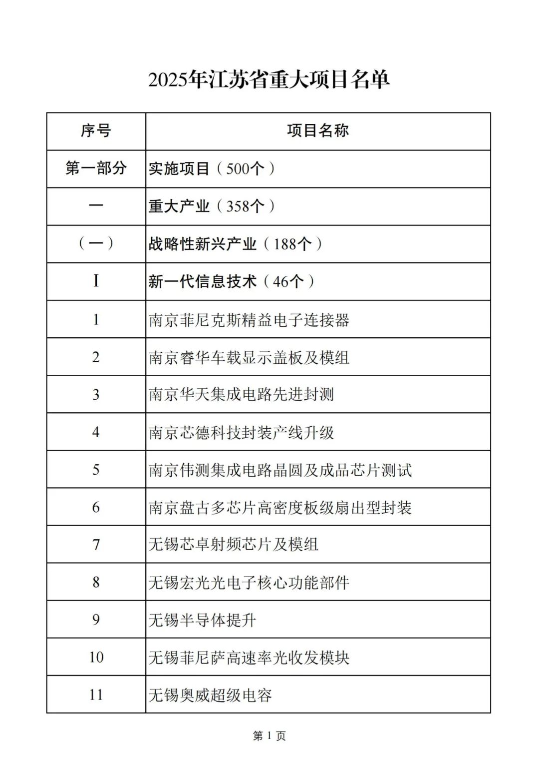 2025年江苏省重大项目名单、2025年江苏省民间投资重点产业项目名单
