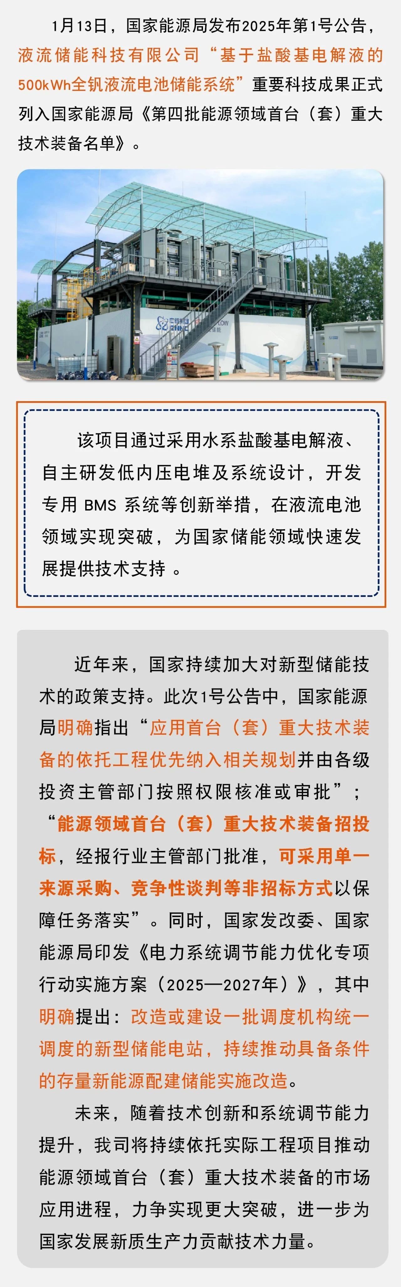 权威认证 · 实力出圈 | 液流储能科技入选第四批能源领域首台(套)重大技术装备名单!