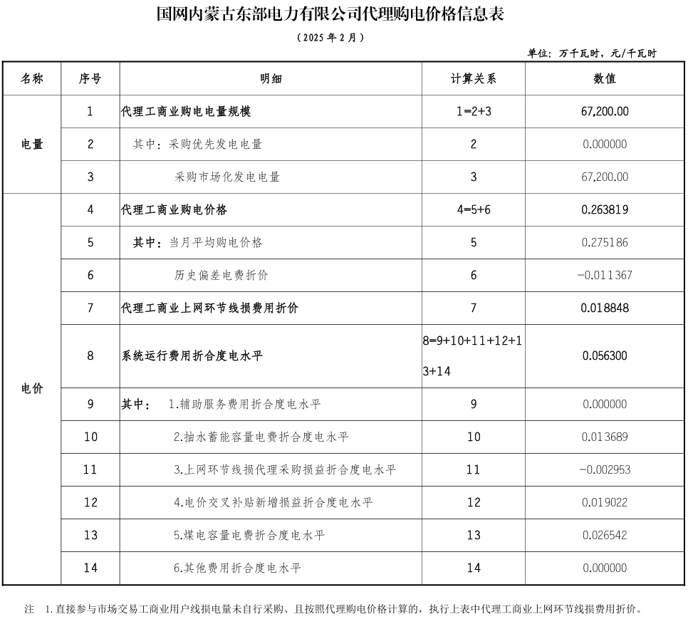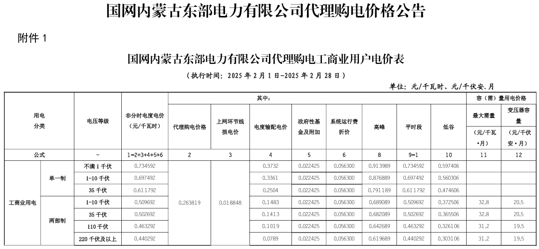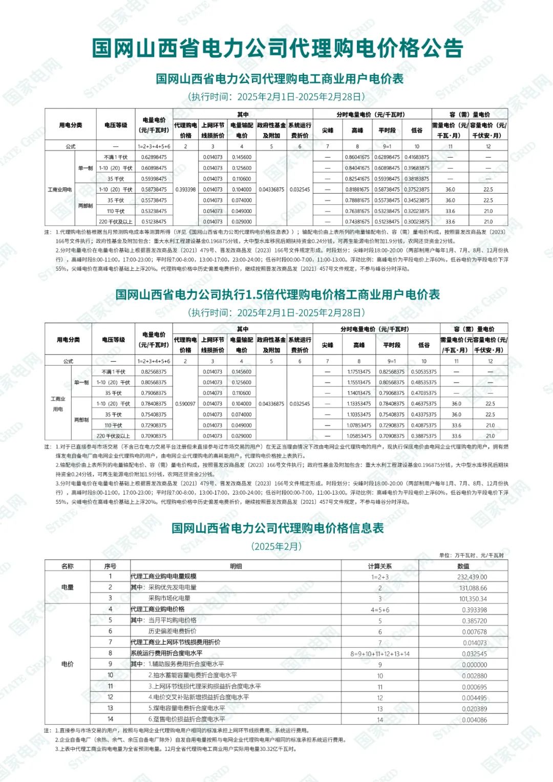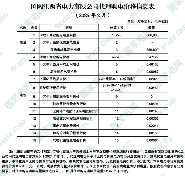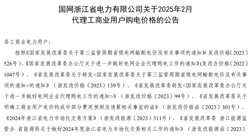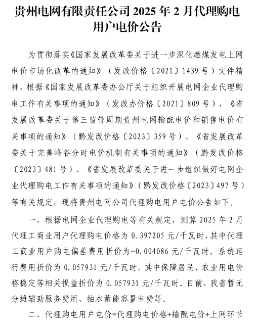 日前,2025年2月全国各地公布电网企业代理购电价格。