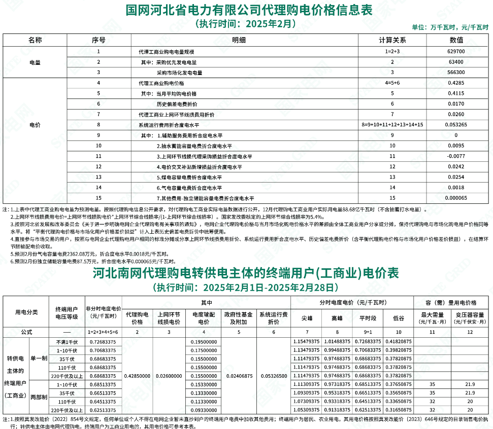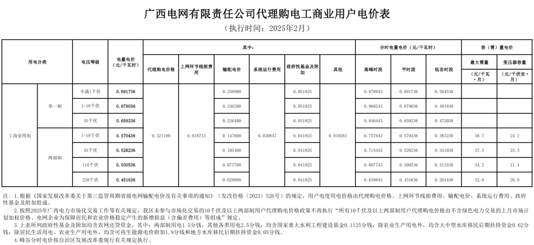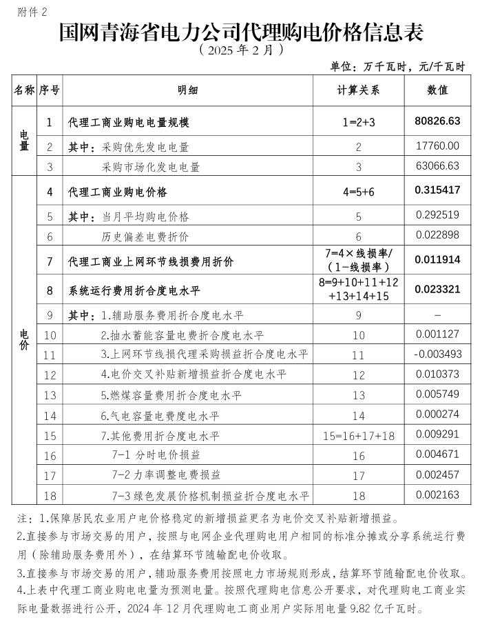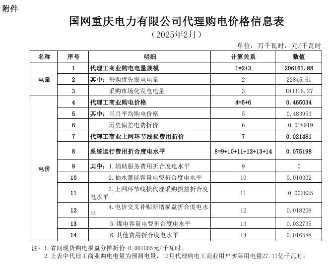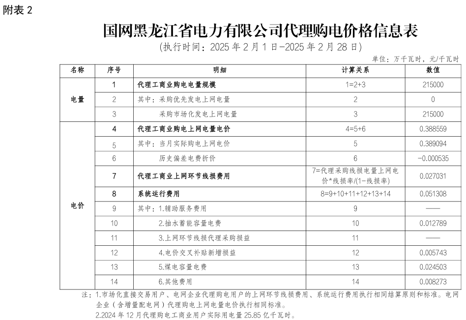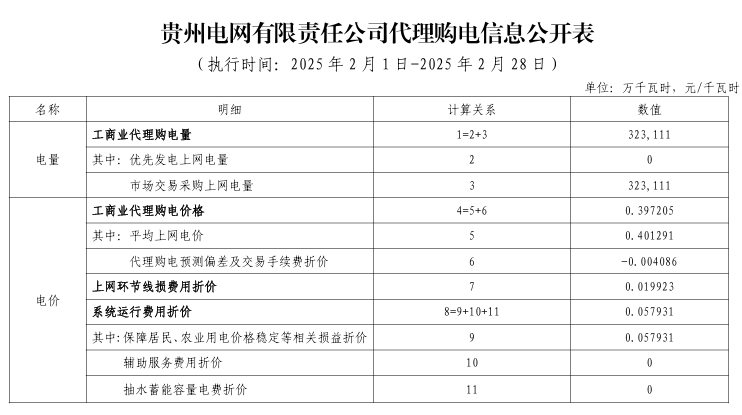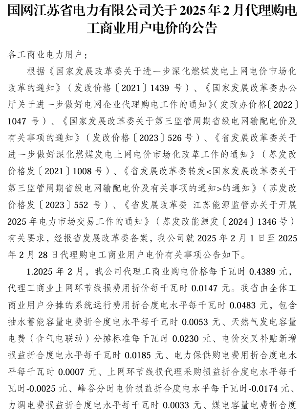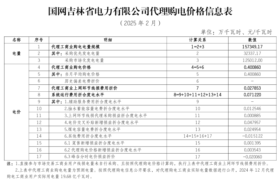 日前,2025年2月全国各地公布电网企业代理购电价格。