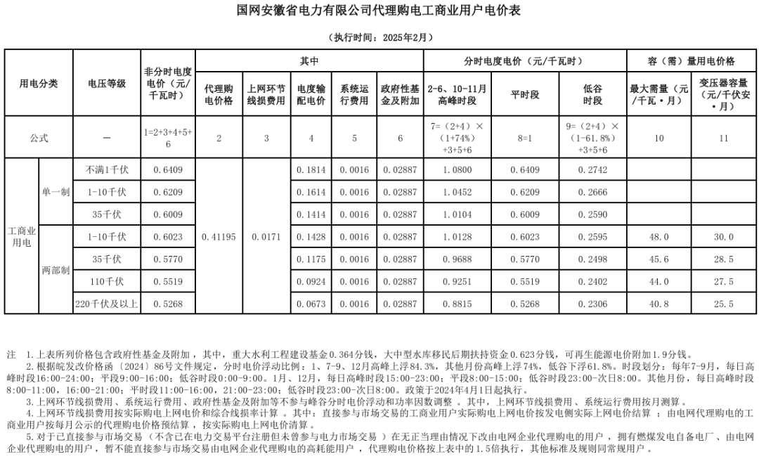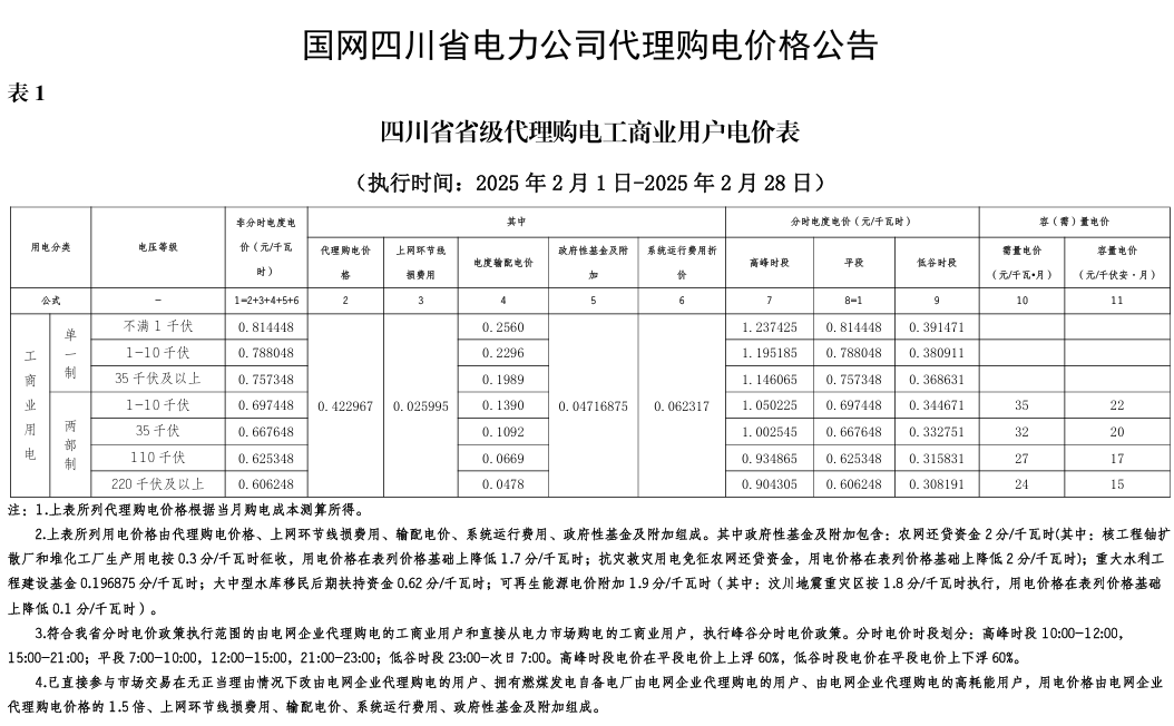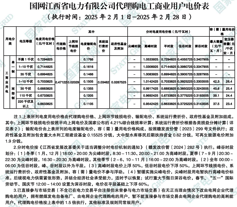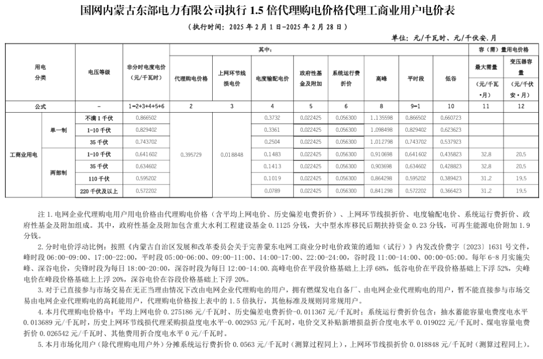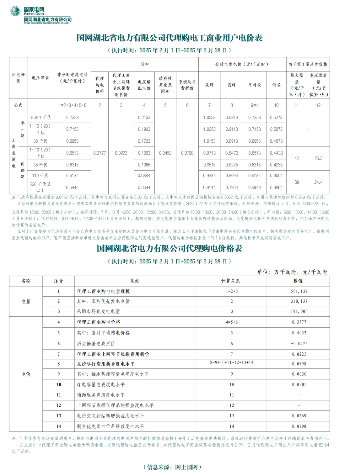 日前,2025年2月全国各地公布电网企业代理购电价格。
