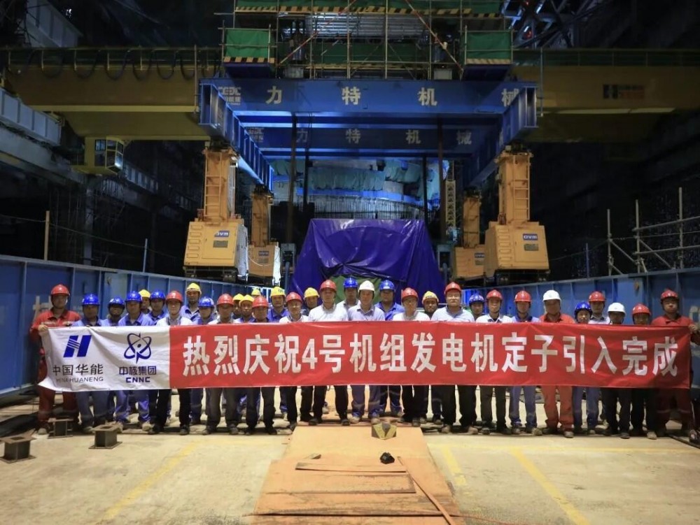 2025年6月7日15:28,华能昌江核电二期工程项目4号机组发电机定子开始起吊,21:08成功就位于设备基础上,整个过程安全质量可控。发电机定子的顺利就位,为后续厂房封闭、汽轮发电机组安装奠定了坚实的基础也标志着4号机组常规岛逐步进入设备安装阶段。