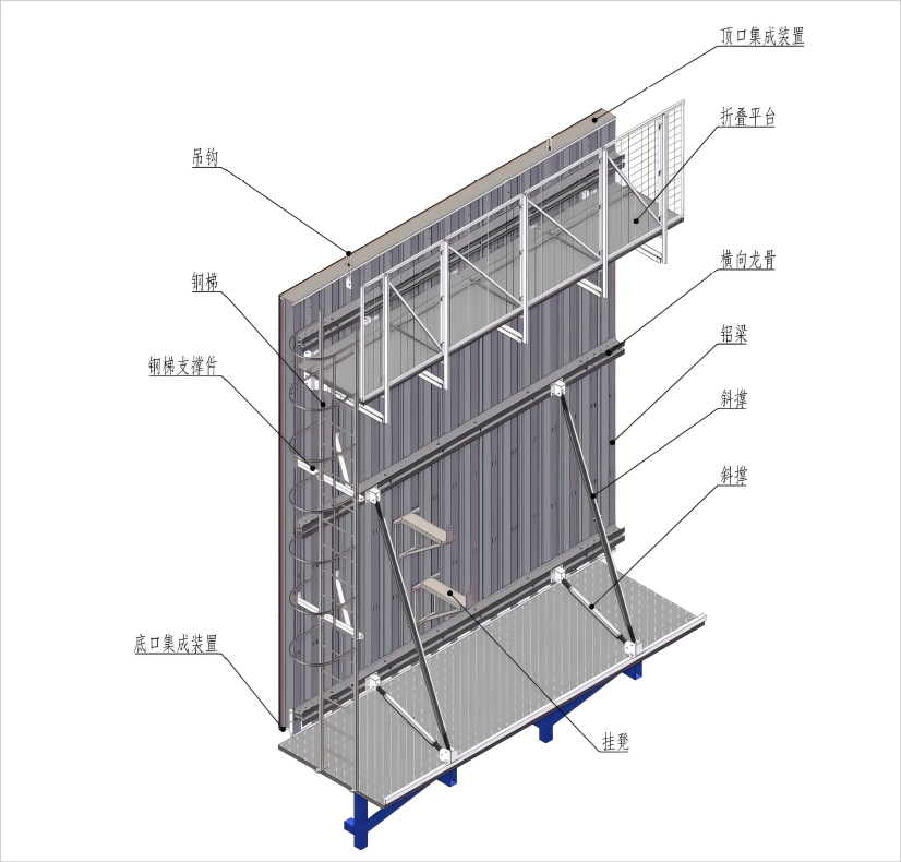直行墙大模板通过多维度优化确保施工安全可靠。模板增设经结构强度、材料性能及防滑设计专项优化的专业起重吊装吊钩,可安全承载模板重量,实现稳定起吊与悬挂,降低吊装隐患。加固采用M17高强拉杆自下而上进行,先在地面完成第一层、第二层高强拉杆安装固定,再于模板结构上架设三角挂凳,并通过螺栓将折叠平台与大模板体系牢固连接。模板顶口与底口配备集成装置增强整体性,底部三角架开设直径22mm孔洞并焊接M20螺母,与斜撑销轴精准连接固定,提升整体稳定性。此外,大模板重复使用率高,能显著降低材料损耗与人工成本,同时配套完善的安全防护措施与稳固支撑体系,可有效规避模板拆除过程中的安全事故,确保拆除作业安全有序开展。