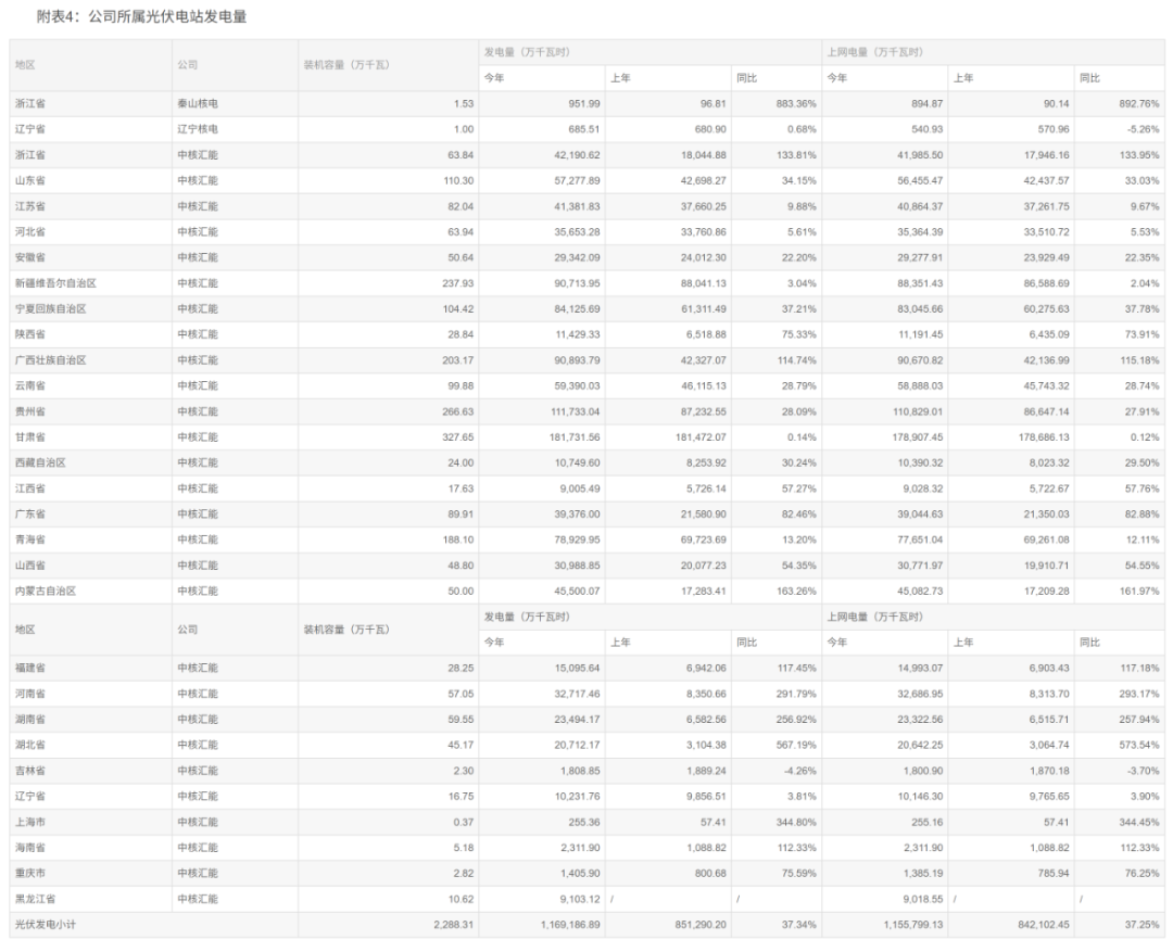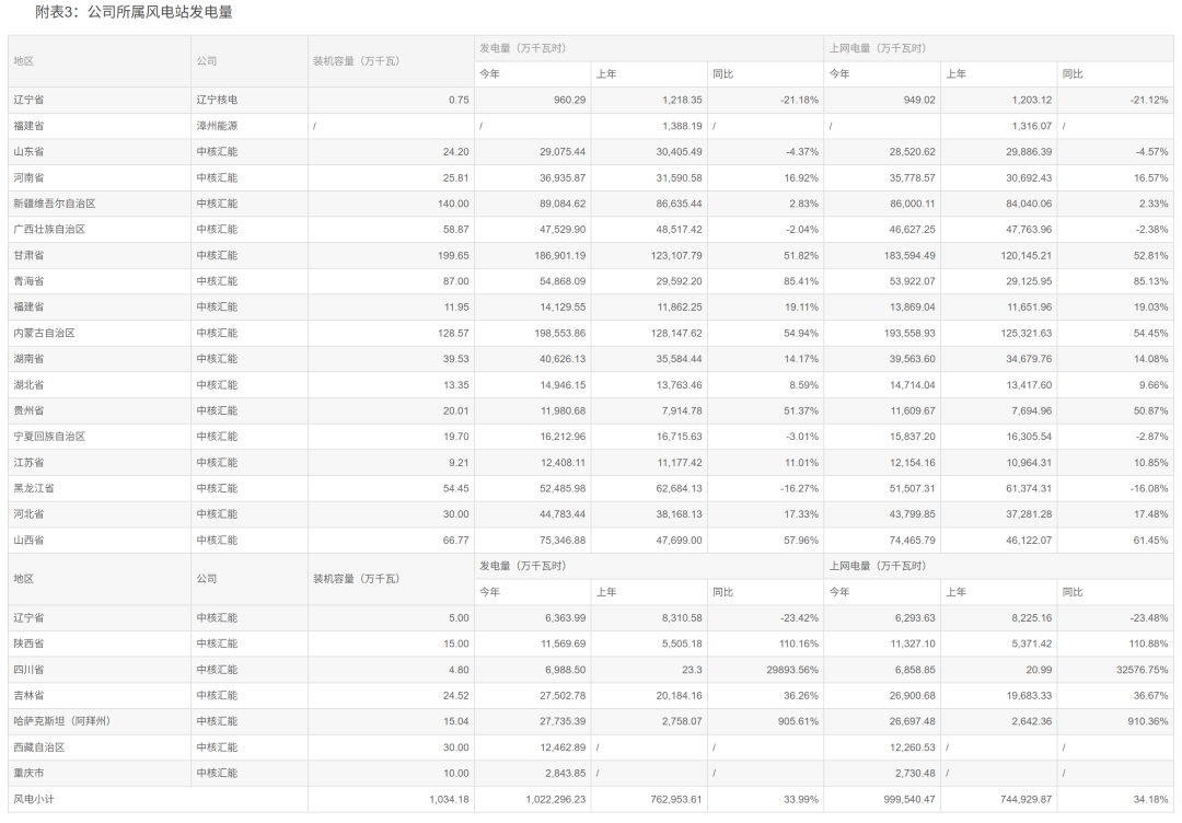 其中:风力发电量102.23亿千瓦时,同比增长33.99%,机组平均利用小时数约为1,003小时;光伏发电量116.92亿千瓦时,同比增长37.34%,机组平均利用小时数约为542小时。