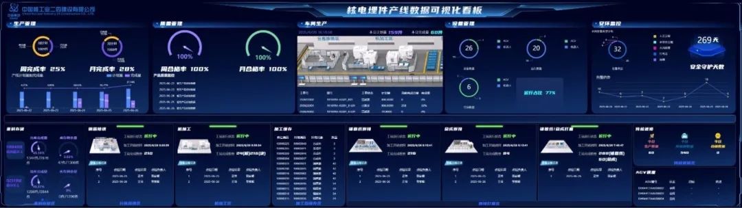 该产线采用国际领先的智能化技术,实现一键启动全自动生产,可自主完成从原材料上料到成品下线的焊接加工全流程。全线依托MES、WMS及数字线边库系统,实现生产计划、质量管控、工艺管理全流程可视化与智能联动;兼容华龙一号、高温气冷堆等多堆型预埋件加工,产品合格率稳定在98%以上,效率较传统模式提升约3倍。