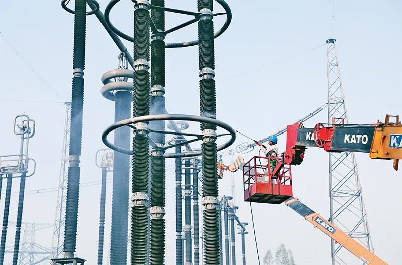 巴基斯坦默蒂亚里拉合尔660千伏直流输电工程,是中巴经济走廊优先实施项目和中巴经济走廊唯一电网项目,也是国家电网首个在国际上采用660千伏直流技术方案投资、建设、运营一体化项目。图为2024年3月1日,该工程开展综合检修,工作人员在冲洗绝缘子。国家电网党组宣传部供图