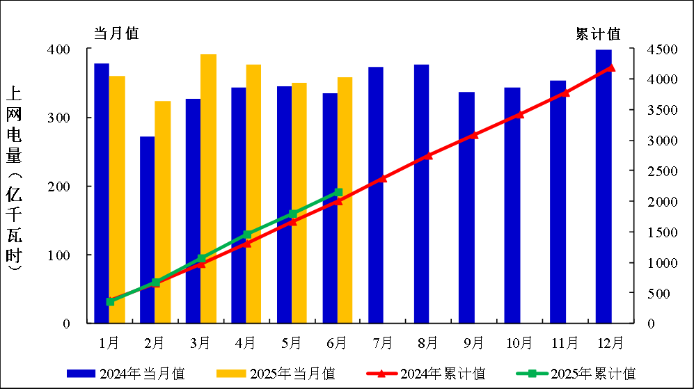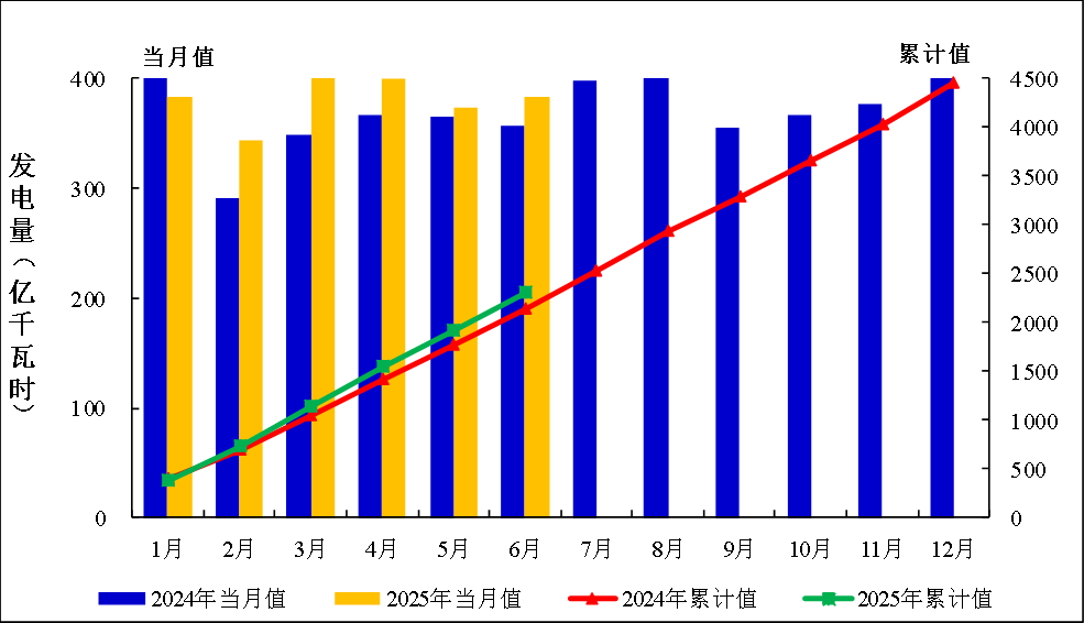 图2:2024年1月至2025年6月全国运行核电机组发电量趋势