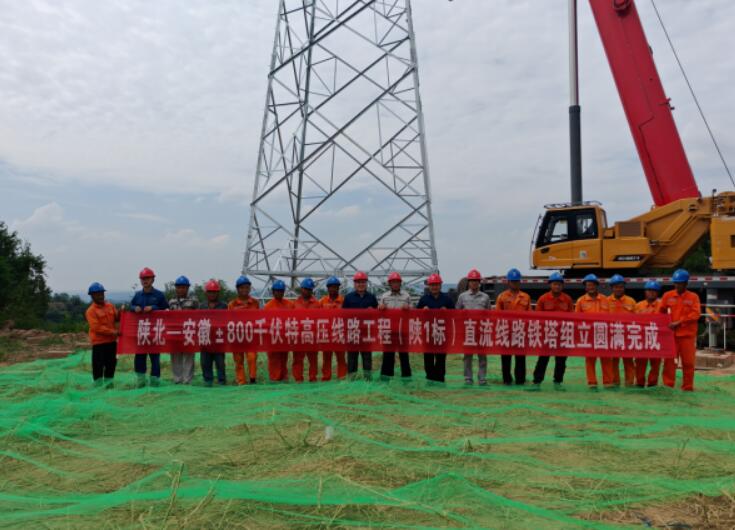 8月7日,随着最后一基铁塔顺利完成组立,标志着陕北-安徽±800千伏特高压直流输电线路工程(陕1标)直流线路组塔工作全线告捷,向全线贯通目标迈出坚实的一步。