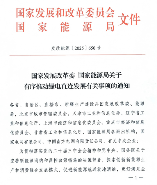 2025年5月,国家发改委、能源局联合印发《关于有序推动绿电直连发展有关事项的通知》,首次从国家层面明确绿电直连的定义、适用范围和管理机制。政策明确,绿电直连分为并网型和离网型两类,前者可通过“自发自用为主、余电上网为辅”的模式参与电力市场,后者则完全独立运行。例如,现货市场连续运行地区的项目,余电上网比例一般不超过20%,而现货市场未连续运行地区则禁止反送电。
