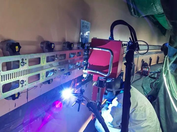 在三澳核电项目,智能激光跟踪MAG自动焊技术覆盖钢衬里底板、筒体到穹顶车间预制和现场安装的全流程系列化、多工况场景的全面应用,形成了具有完全自主知识产权的钢衬里建造高效智能焊接先进技术体系,具有显著的经济社会效益。三澳核电一期项目累计焊缝长度约3763m,共拍片2930张,一次合格率为97.2%,焊接质量稳定。