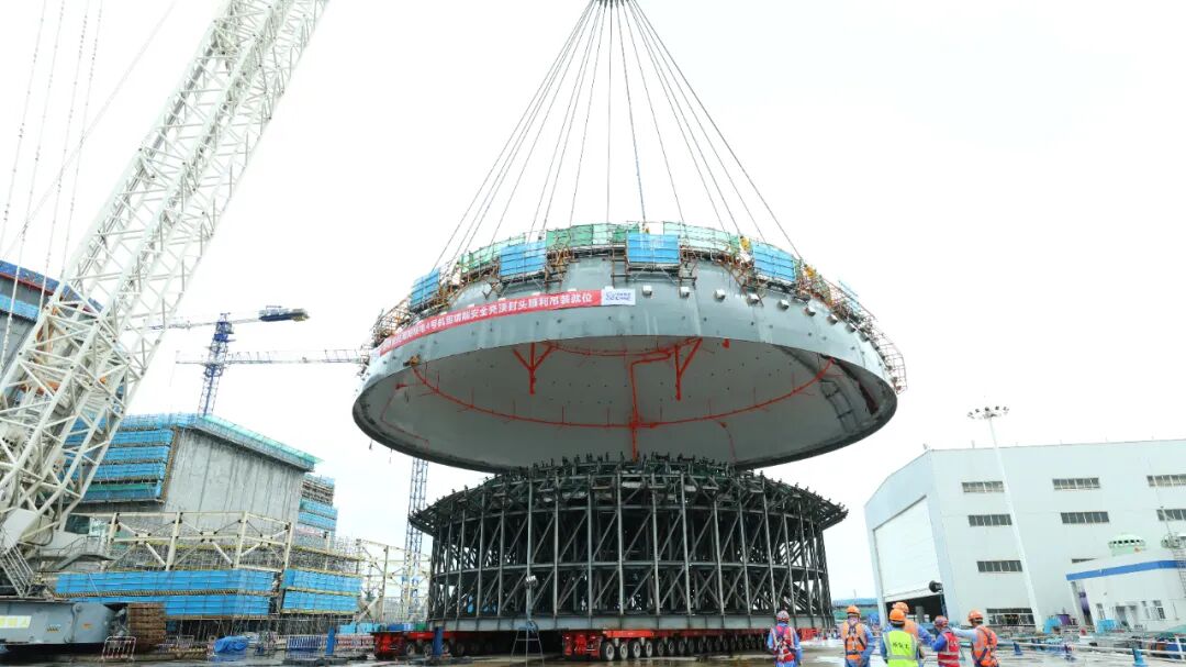 9月6日13时59分,由中核五公司负责安装施工的海阳核电4号机组钢制安全壳顶封头(CVTH)顺利完成吊装并精准就位,全程历时3小时22分钟,作业过程安全可控,平稳有序。此节点的圆满完成,标志着4号机组钢制安全壳拼装工作全部结束,4号核岛主体施工正式由土建阶段转入设备安装阶段。