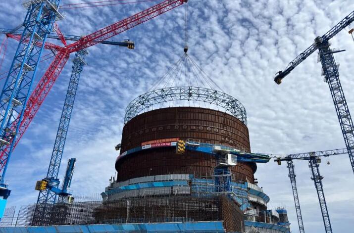 9月7日12时58分,石岛湾扩建一期工程1号机组反应堆厂房钢衬里模块六(筒体七八层)顺利吊装到位,标志着1号机组钢衬里筒体模块吊装工作全部完成,为下一步开展钢衬里筒体九层施工、穹顶吊装等工作奠定了坚实基础。