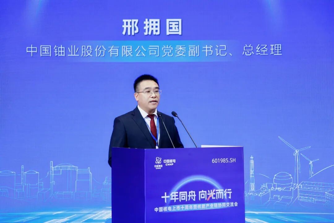 刘建平在致辞中高度肯定中国核电十年来取得的卓越成就。他指出,中国核电以实际行动践行了集团党组的战略部署,以优秀的经营业绩和规范的市值管理回报投资者信任。中核集团将一如既往支持中国核电在资本市场的各项工作,将中国核电打造成为中核集团上市公司的标杆,树立中核集团信得过、靠得住的优秀上市品牌,让所有投资者共享核工业发展的红利,为实现双碳目标、建设核电强国作出更大贡献。