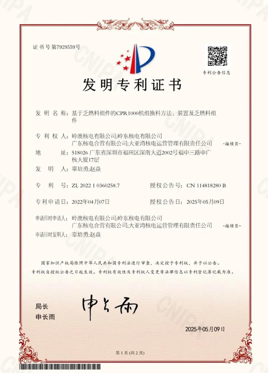 近日,大亚湾核电在知识产权领域迎来历史性突破——累计获得国家知识产权局授权发明专利突破1000件,这标志着大亚湾核电成为国内核电运营企业中首家发明专利授权迈入“千件级”的领军企业。