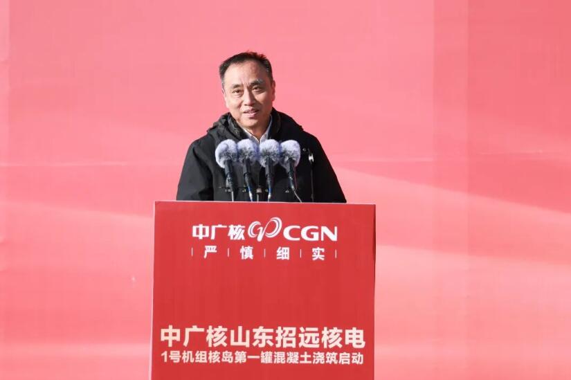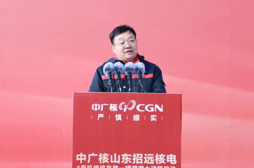 庞松涛代表集团公司对项目建设全面启动表示祝贺,对国家相关部委、山东省各级党委和政府给予的指导支持,以及合作伙伴、一线建设者的辛勤付出表示感谢。他指出,作为中广核第十个核电基地,招远核电项目的高质量推进意义深远,不仅为集团“十四五”目标实现提供了有力支撑,为“十五五”开篇布局筑牢根基,更为山东加快构建新型能源体系注入强劲动力,为保障国家能源安全、实现“双碳”目标贡献中广核力量。