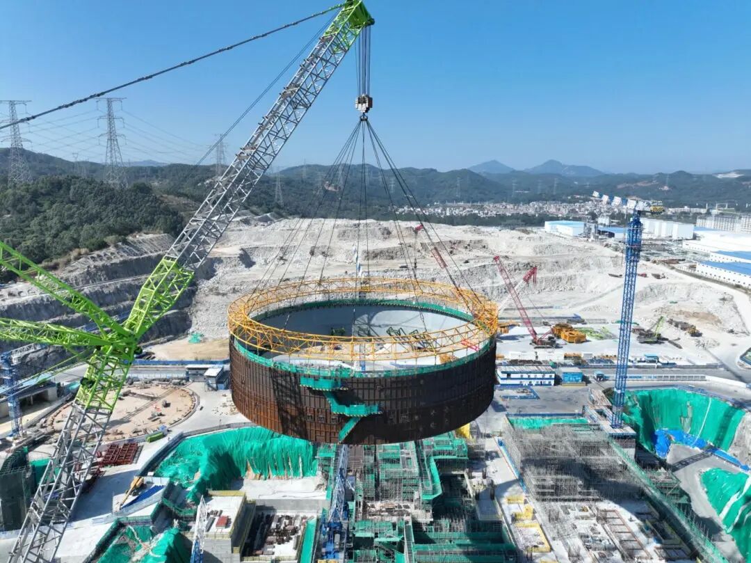 钢衬里是反应堆厂房安全壳的主要组成部分。本次吊装的模块五总重超200吨。为确保吊装任务高效、优质完成,在公司党委及核电事业部党委统筹部署下,漳州核电项目团队系统策划、精细化管理,构建起全过程可控、可追溯的责任链条与管控体系。