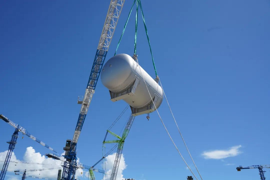 2024-04-30 7月4日,中核二三承建的华龙一号漳州核电3号机组压缩空气储罐顺利完成吊装引入,为核岛厂房结构施工和后续机械设备预引入等关键路径施工奠定了坚实基础。