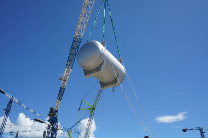 7月4日,中核二三承建的“华龙一号”漳州核电3号机组压缩空气储罐顺利完成吊装引入,为核岛厂房结构施工和后续机械设备预引入等关键路径施工奠定了坚实基础。